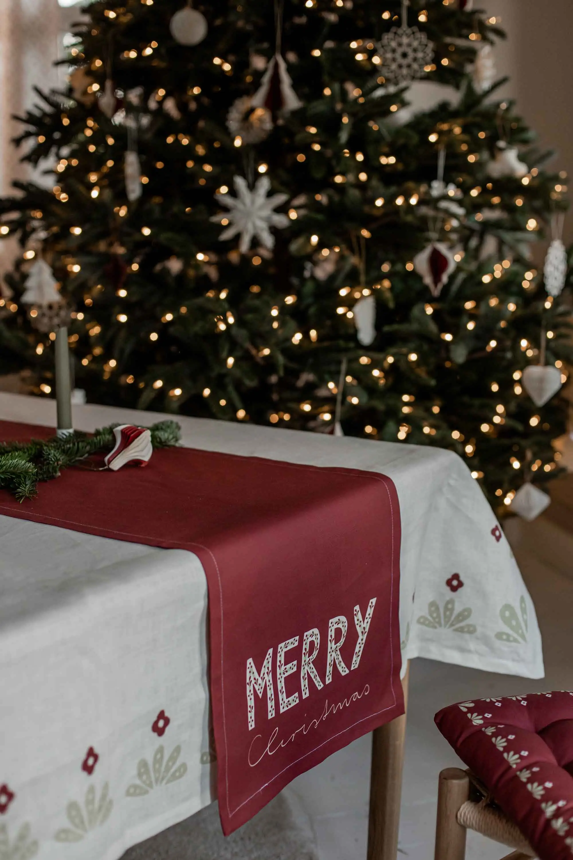 Tischläufer Tischläufer Merry Christmas Rot Beige